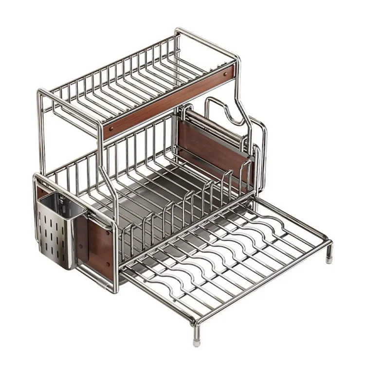 ໃນຂົງເຂດການເກັບຮັກສາເຮືອນຄົວ, ໂຖປັດສະວະແລະ rack ແຜ່ນທີ່ປະສົມປະສານການປະຕິບັດ, ຄວາມທົນທານແລະການອອກແບບທີ່ເປັນມິດກັບຜູ້ໃຊ້ແມ່ນສໍາຄັນສໍາລັບການເພີ່ມອັດຕາການນໍາໃຊ້ພື້ນທີ່ເຮືອນຄົວແລະປັບປຸງຄວາມສະດວກໃນການດໍາເນີນງານ. rack ລະບາຍນ້ໍາຫຼາຍຫນ້າທີ່ສາມາດປັບໄດ້ຂອງພວກເຮົາ, ທີ່ເຮັດດ້ວຍເຕັກໂນໂລຊີ electroplating ແລະສາມາດຂະຫຍາຍໄດ້ແລະຫຼາຍຫນ້າທີ່, ໄດ້ບັນລຸການຍົກລະດັບທີ່ສົມບູນແບບເມື່ອທຽບກັບ racks ແບບດັ້ງເດີມໃນດ້ານການຊ່າງຫັດຖະກໍາວັດສະດຸ, ການອອກແບບໂຄງສ້າງ, ຄວາມເຂົ້າກັນໄດ້ໃນການເຮັດວຽກແລະການປົກປັກຮັກສາສຸຂະພາບ. ມັນໄດ້ກາຍເປັນທາງເລືອກທີ່ເຫມາະສົມສໍາລັບການເກັບຮັກສາເຮືອນຄົວທີ່ທັນສະໄຫມ.