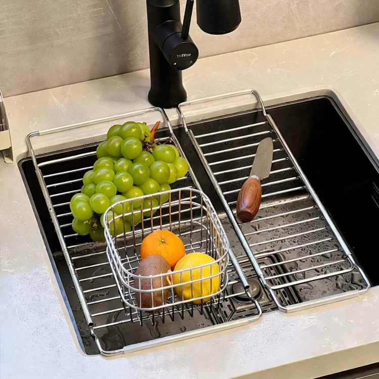 ຊັ້ນວາງລະບາຍນ້ຳສະແຕນເລດທີ່ສາມາດຂະຫຍາຍໄດ້ນີ້ແມ່ນອຸປະກອນຮາດແວທີ່ເກັບມ້ຽນ ແລະລະບາຍນ້ຳທີ່ໃຊ້ເລື້ອຍໆໃນເຮືອນຄົວ, ອອກແບບສະເພາະສຳລັບການລະບາຍນ້ຳ ແລະ ເກັບຮັກສາເຄື່ອງໃຊ້ ແລະ ສ່ວນປະກອບໄວ້ຊົ່ວຄາວໃນບໍລິເວນອ່າງນ້ຳ. ດ້ວຍຂະຫນາດທີ່ສາມາດປັບໄດ້, ວັດສະດຸສະແຕນເລດແລະໂຄງສ້າງປະຕິບັດໄດ້, ມັນໄດ້ກາຍເປັນເຄື່ອງມືເກັບຮັກສາຫຼັກໃນພື້ນທີ່ອ່າງນ້ໍາເຮືອນຄົວ.