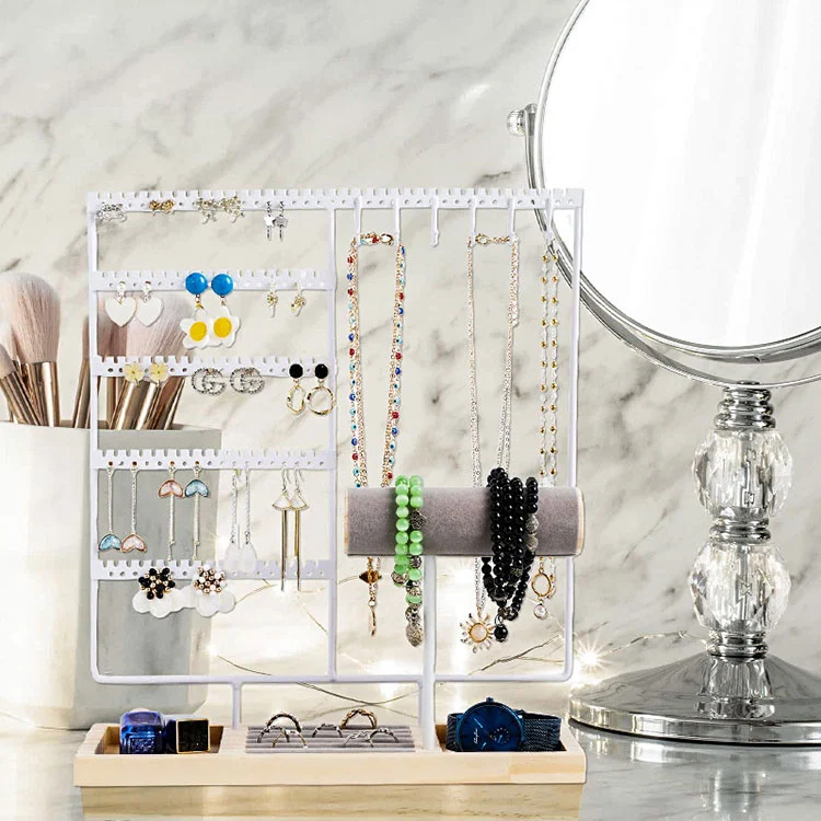 ການວາງແຜນຄວາມອາດສາມາດ: ມັນສາມາດຖືເຄື່ອງປະດັບເກືອບ 100 ຊິ້ນ. ຈໍານວນ hooks: 12 (ສາມາດຮອງຮັບ 20-30 ສາຍຄໍ). ຄວາມອາດສາມາດຂອງຜູ້ຖືກະບອກ: 8-10 ສາຍແຂນ/ໂມງ. ຈໍານວນຊ່ອງໃສ່ແຫວນ: 15-20. ຈໍານວນຊ່ອງຕຸ້ມຫູ: 40 ຄູ່ ~